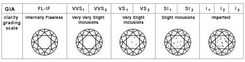 - Clarity-Is the size, quantity, location and relief of any inclusions in the diamond. No these are not called carbon, the entire diamond is all carbon! Inclusions can be other crystals, or interruptions in the growth structure of a diamond, some can be pretty , and some are distracting . This is on a sliding scale like color Flawless or Internally flawless are at the top, and I1 or 2 are at the bottom. Anything that is SI1 or better to your naked eye is free from inclusions and is a nice looking grade.