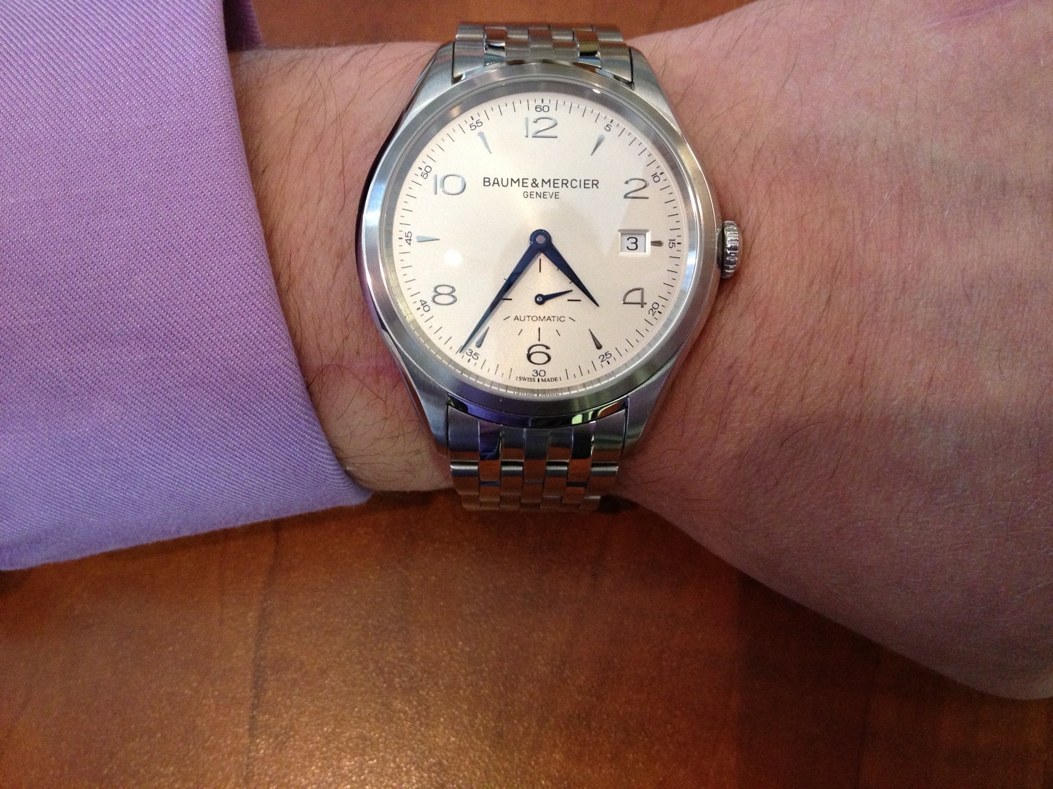 Baume Mercier is a historic brand that has a lot going for it lately. After their rebranding a couple of years ago they have churned out a number of great pieces, including the Capeland Flyback I have already blogged about, and now the Clifton. The Clifton is a watch that is unmistakably traditional in its design, but is gently pulled into the modern world with a larger case size and overall design. There is 180 years of watch making behind this watch, and it shows. The polished and satin case and bracelet contrasts perfectly, the dial is simple and un-cluttered, the size and weight are exactly you would expect of a luxury piece, and it is all executed so when you place it on your wrist is seems like it’s been there for years. To top it off, it is all available for under $3000, which is fantastic for this caliber of watch (pun intended).