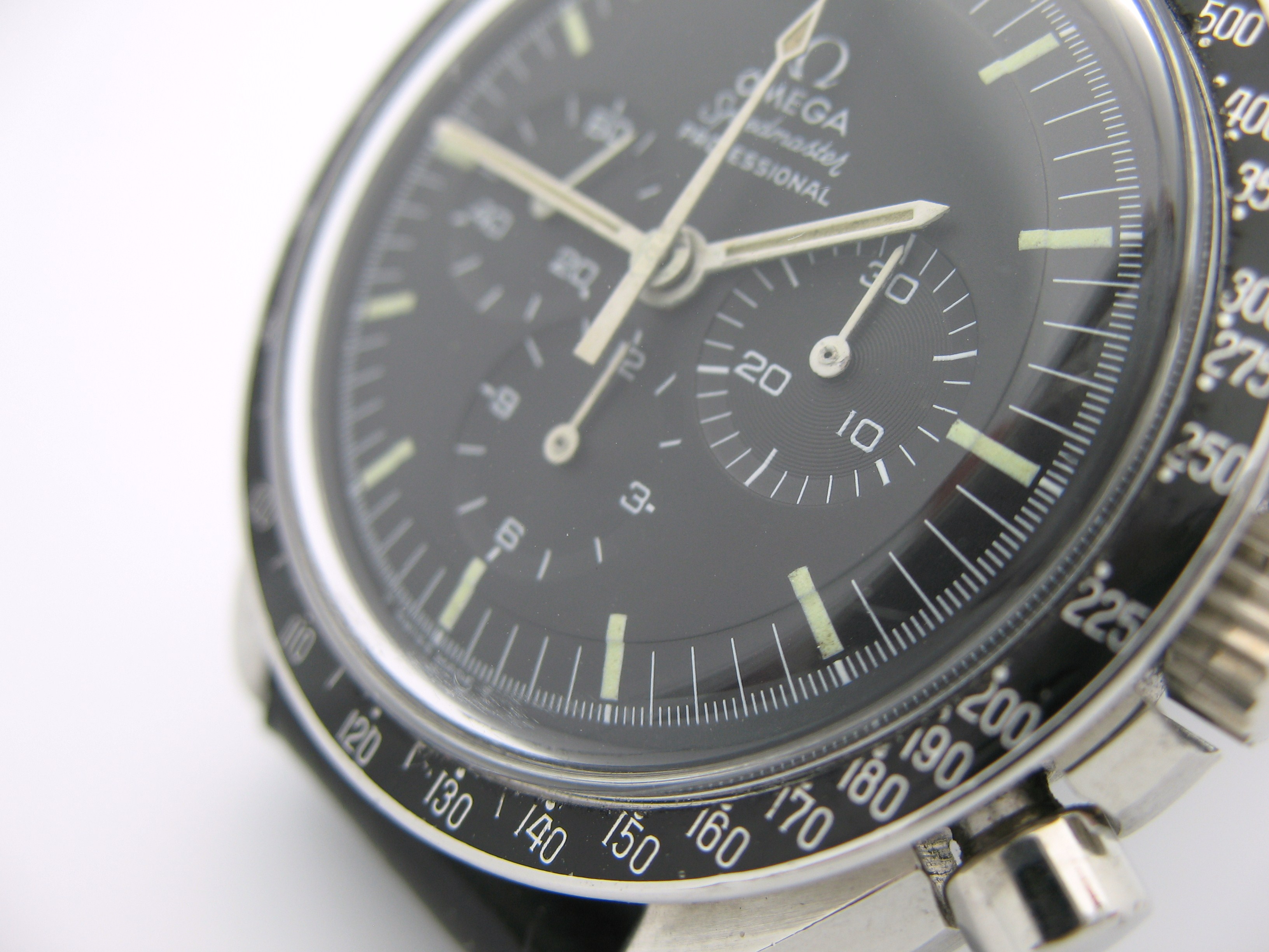 I lived a milestone recently, a few weeks ago I graduated from the Gemological Institute of America and I am now a Graduate Gemologist (I get to put the cool little G.G. after my name). I thought this was the right reason to give myself a graduation gift. There has been one watch that I have pined for, to add to my collection, for quite some time. Being the Omega fan that I am, it won’t surprise you to find out that it is, of course one of their models- The Speedmaster professional. So I rewarded myself with a 1968 “Pre-moon” Omega Speedmaster. There are a number of reasons I chose this particular watch, but one very important one I’ll tell you about later on. For now we will dissect why I like this model.